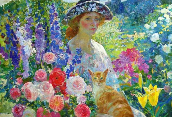 丹尼爾·格哈茨(Daniel F.Gerhartz,1965-),美國畫家,1965年出生于威斯康星州的基瓦斯庫姆。自幼立志學畫,就讀美國芝加哥藝術學院,他的作品具有濃厚浪漫寫實主義風格,表現題材廣泛,猶以女性題材為最多,無論是日常生活中休息,沉思的少女,還是牧場田園詩般的風景和人物都令人印象深刻。丹尼爾十幾歲時,幾個朋友打賭把自己關在屋子里,一下午只許畫沉悶的圖紙。由此他找到了自己畢生的事業。Daniel F.Gerhartz的作品畫風樸實直接,總是給人以幸福美好的共鳴。他精湛嫻熟的技術的筆下創造的世界里,人物身著戲劇服裝,人和自然美好關系,在抒情的畫面中突出景觀環境方面的特殊重要性。他捕捉色、光來營造畫面人物情緒和情感,與花草等植物緊密結合成一體,這常常就是吸引人眼球的原因。